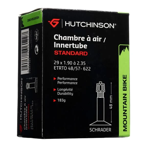 La Camera d’aria Hutchinson Estandar 29×1.90 Valvola Schrader 48 mm ha uno spessore di 0,9 mm per una buona resistenza alle forature.